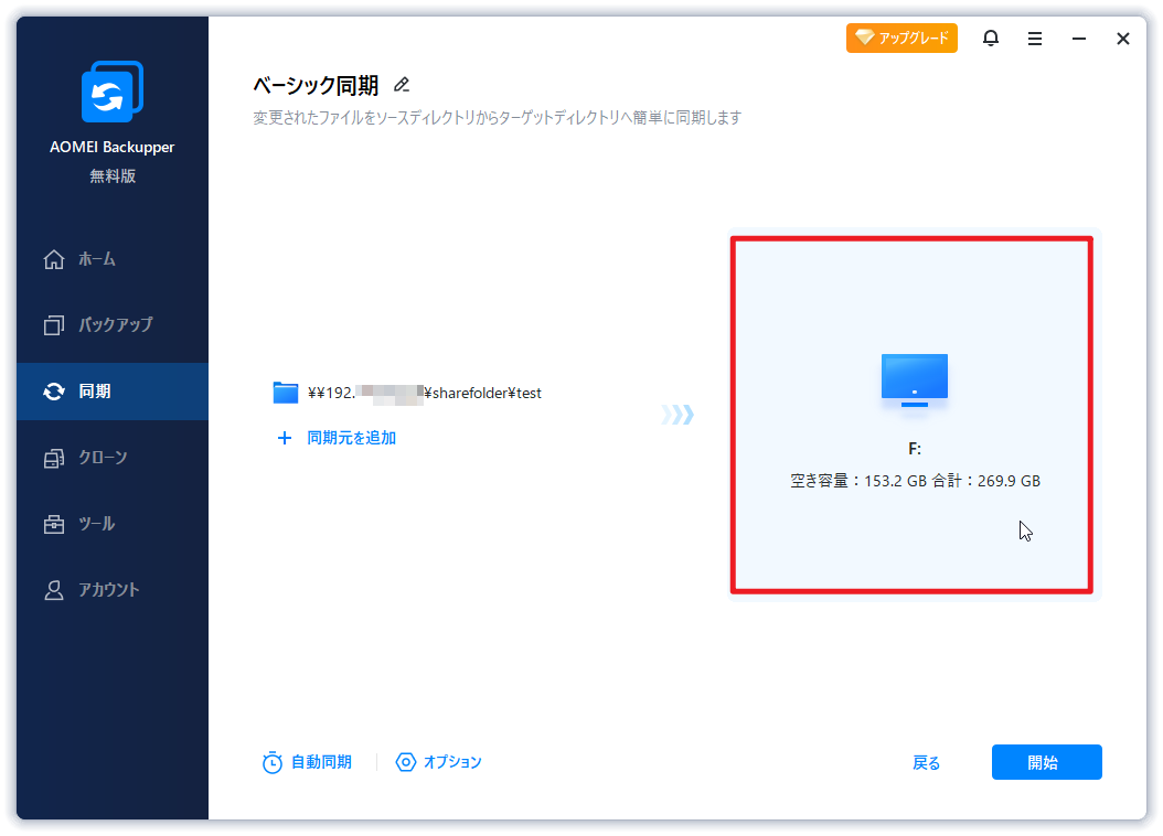 ネットワークフォルダをGoogleドライブに同期できない場合、AOMEI Backupper Standardに助けを求めることができます。このソフトウェアを使用すると、ネットワークフォルダにあるフォルダやファイルをGoogleドライブに簡単に同期することができます。また、自動同期を設定することもでき、手間を省き、時間と労力が節約できます。