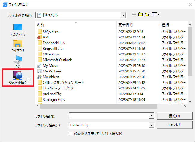 手順 3. 「Share/NAS」をクリックします。