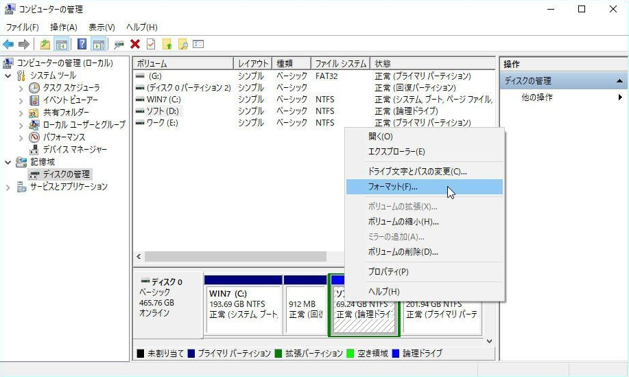Windowsで検索ボックスにdiskmgmt.mscと入力し、「ディスクの管理」ツールを開きます。HDDディスクを右クリックして「フォーマット...」を選択し、画面の指示に従います。