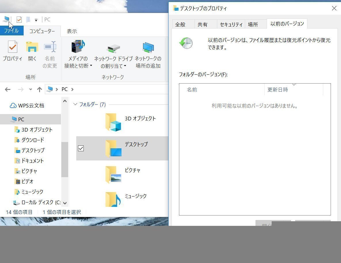 もし紛失したファイルが保存されていたドライブでシャドウコピーが利用できる場合は、以前のバージョンを利用して削除されたファイルを簡単に復元できます。たとえば、デスクトップに保存されたファイルを復元するには、次の手順を実行します。