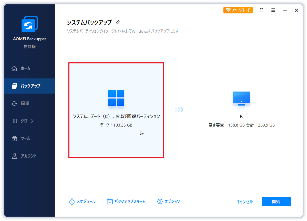 AOMEI Backupper Standardは強力なバックアップ&復元ソフトです。完全無料ですし、データを安全に保つために異なるバックアップオプションを提供します。顕著な特徴は次のとおりです。