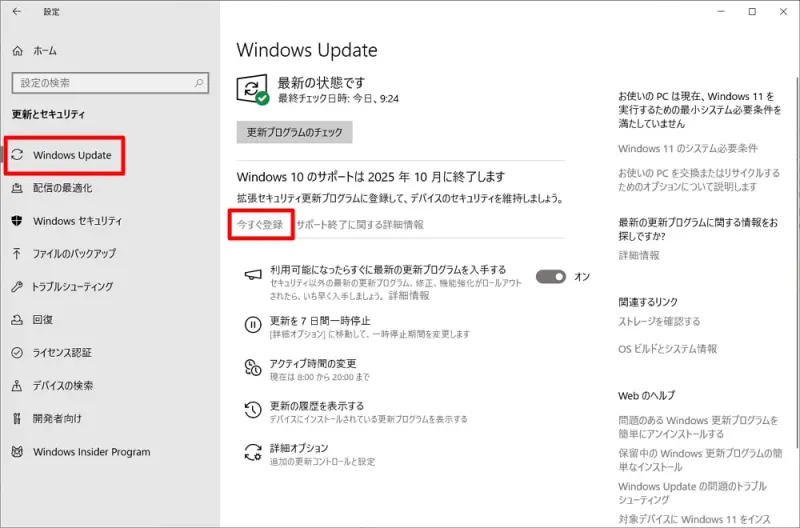 ステップ 3. 「Windows Update」タブを開き、「Windows 10のサポートは2025年10月に終了します」の下にある「今すぐ登録」ボタンをクリックします。