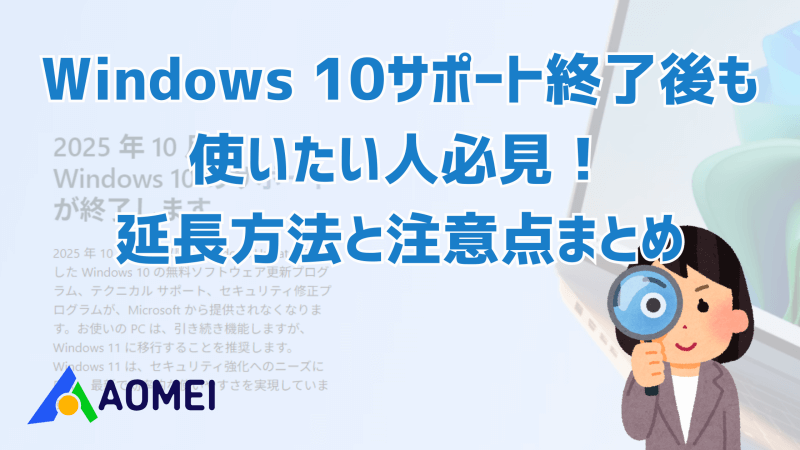 ただし、ESUでもすべてのリスクを防げるわけではないため、定期的なバックアップで備えておくことが重要です。AOMEI Backupperを活用して、大切なデータとシステムをしっかり守りましょう。