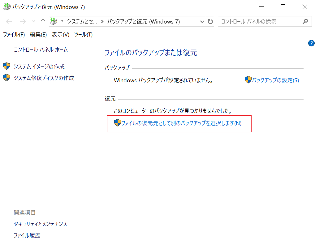 手順 2. 「コントロール パネル」の「バックアップと復元(Windows 7)」をクリックします。