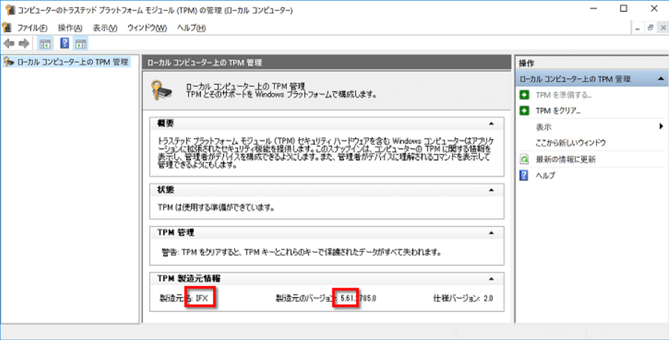 画像2:TPMを実装していないか、TPM機能を無効にしている