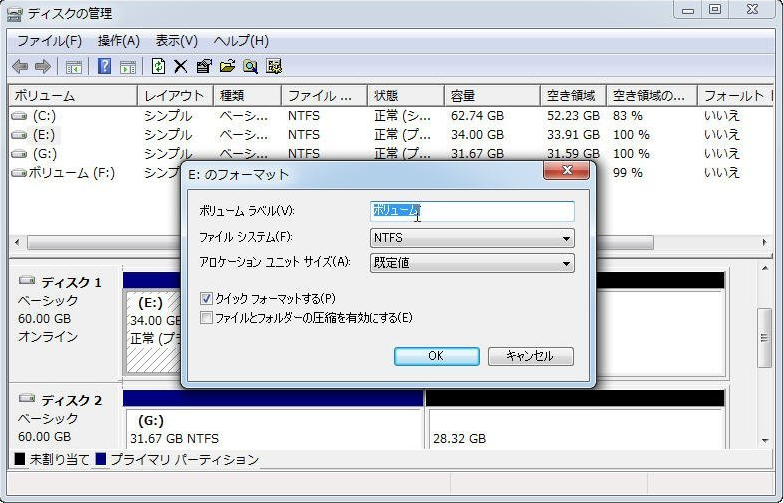 ステップ 3. ポップアップウィンドウで設定を変更できます。例えば、ボリュームラベル、ファイルシステムやクイックフォーマットの実行など。次に、「OK」をクリックします。
