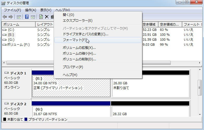 ステップ 2. フォーマットするSSDパーティションを右クリックし、「フォーマット」を選択します。