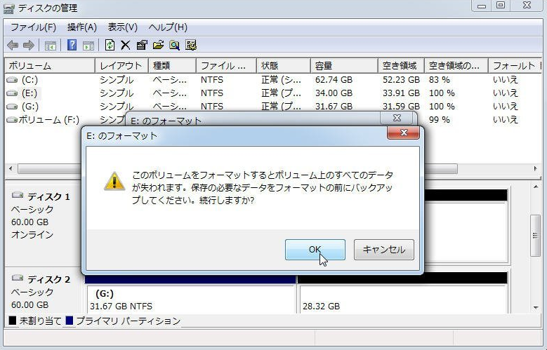 ステップ 4. データ損失に関する警告が表示されます。確認後、「OK」をクリックしSSDのフォーマットを実行します。