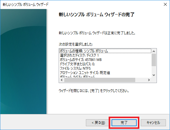 8. その後、「完了」をクリックしてウィザードを終了し、フォーマットを実行します。