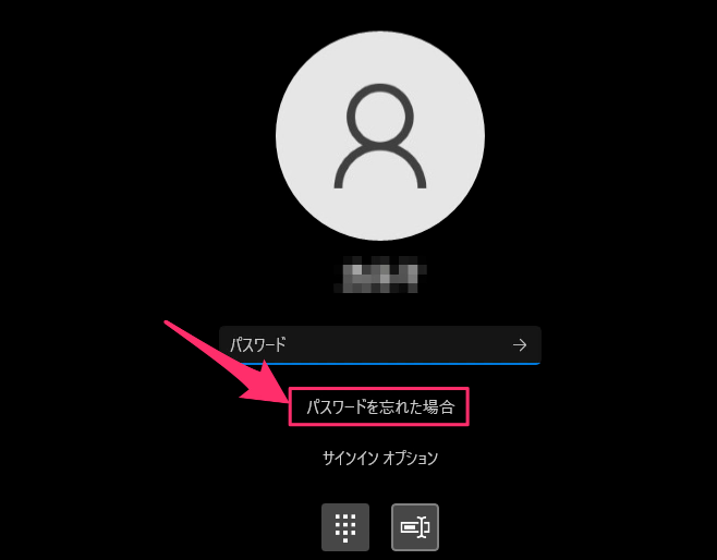 ステップ 1. Windows 11のログイン画面に移動し、パスワード入力ボックスの下にある「パスワードを忘れた場合」をクリックします。