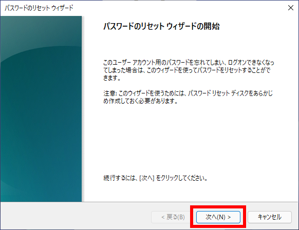 ステップ 3. 「パスワードのリセットウィザード」が表示され、「次へ」をクリックします。