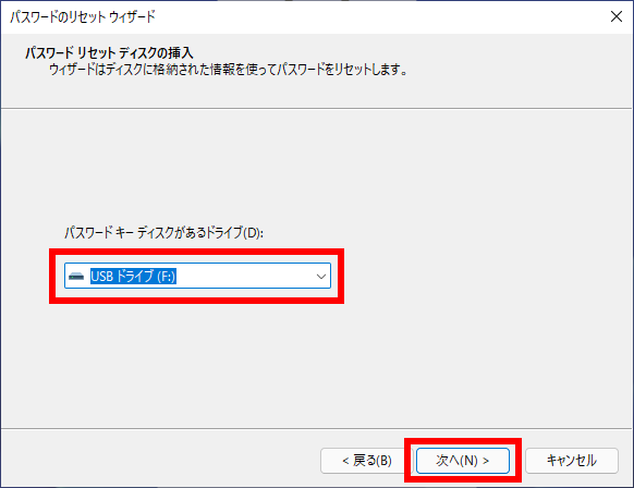 ステップ 4. 次に、挿入したパスワードリセットディスクを選択し、「次へ」をクリックします。