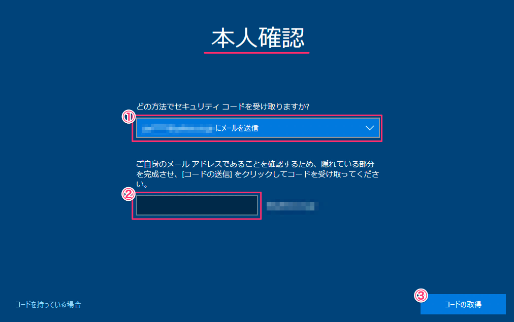 ステップ 2. 画面の指示に従って、該当するメールアドレスまたは電話番号を使用してアカウントを認証します。