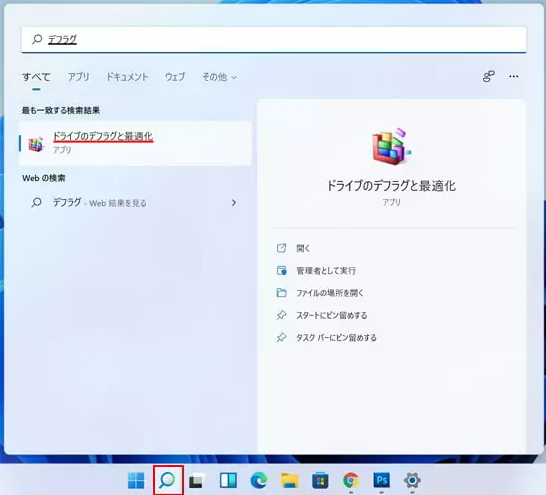 ステップ 1. 検索アイコンをクリックし、「デフラグ」と入力します。検索結果から「ドライブのデフラグと最適化」を選択します。