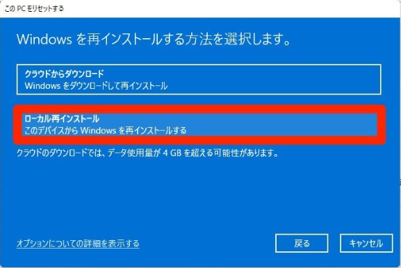3. Windowsを再インストールする方法を選択します。