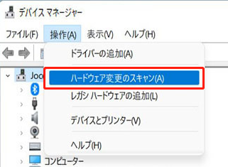 4. 上のツールバーの「操作」をクリックし、メニューから「ハードウェア変更のスキャン」を選択します。Surfaceを再起動する必要がある場合があります。インターネットに接続されている場合は、タッチスクリーンドライバーが自動的にダウンロードされ、インストールされます。
