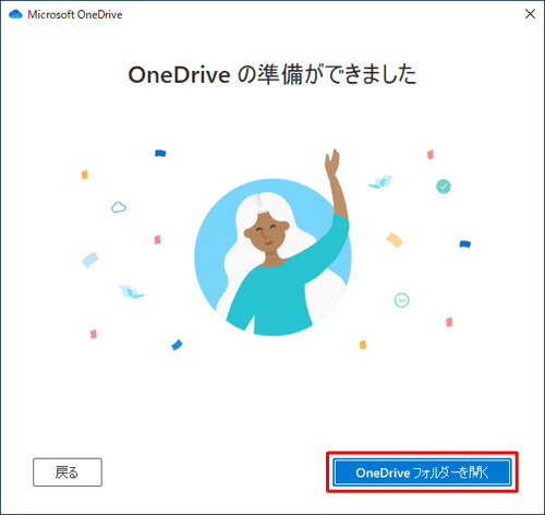 手順 4. 「OneDriveの準備ができました」ウィンドウで、「OneDriveフォルダーを開く」をクリックして、すべてのファイルがここにあるかどうかを確認します。