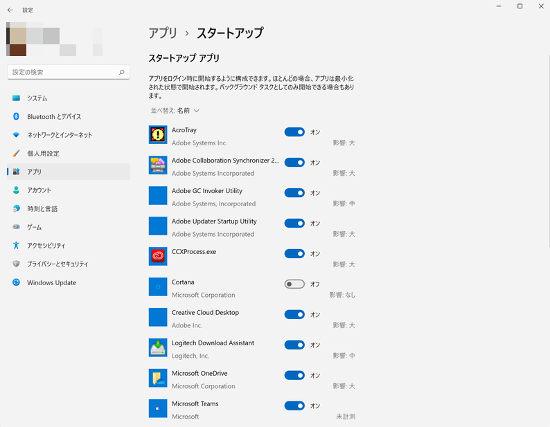 例えば、起動時に自動で立ち上がるアプリが多いと、 Windows 11の起動速度や動作全体が遅くなります。そのため、不要なスタートアップアプリを無効化するのをお勧めします。