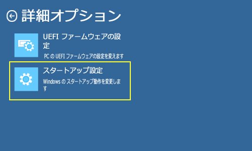 手順 2. 「オプションの選択」>「トラブルシューティング」>「詳細オプション」>「スタートアップ設定」をクリックします。