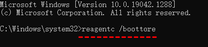 「コマンド プロンプト」を開き、「reagentc /boottore」と入力して「Enter」キーを押し、コンピュータを再起動します。