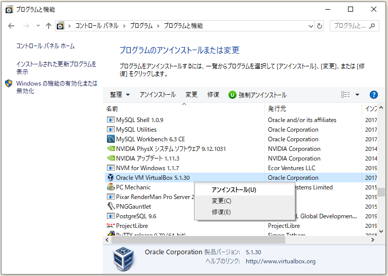 手順 1. 解決策1のようにVirtualBoxをアンインストールします。