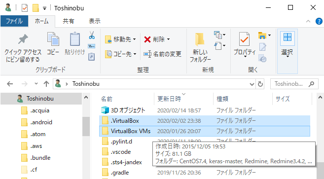 手順 2. アンインストールが完了したらしいんだけど、VirtualBoxによって作成されたデータはまだあります。
