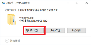 ステップ 3. Windowsが、フォルダーの削除には管理者権限が必要であることを表示します。管理者としてログインしている場合、または管理者グループのメンバーである場合は、「続行」をクリックすればよいです。大きいファイルなので、コンピュータから永久に削除されます。