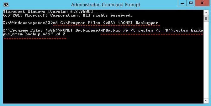 手順 4. D:¥system backupに保存されているシステムバックアップをディスク2に復元し、Enterキーを押すと、「AMBackup /r /t system /s “D:¥system backup\system backup.adi” /d 2」と入力します。画像ファイルのパスと宛先の場所を自分で変更する必要があります。