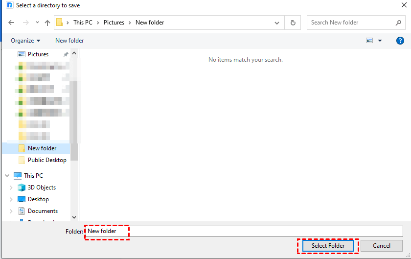 단계 4.복구된 데이터를 위한 새 위치를 선택하고, 폴더 선택을 클릭하여 확인합니다. SSD 데이터 복구 과정은 복구할 데이터의 양에 따라 몇 분 이상 소요될 수 있습니다.