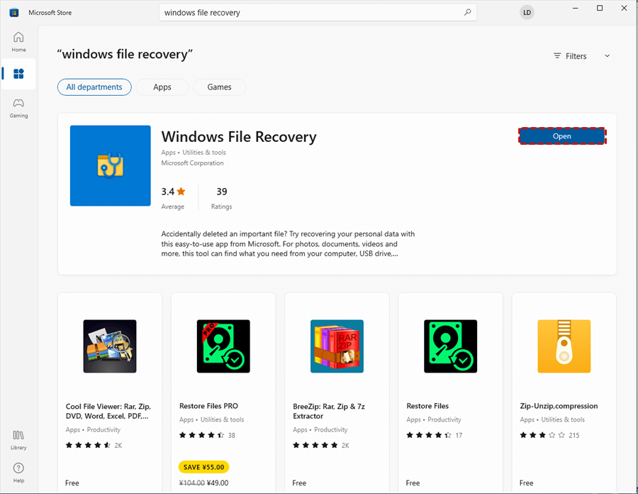 단계 2. "Windows 파일 복구"를 검색하여 "열기"를 클릭하세요.