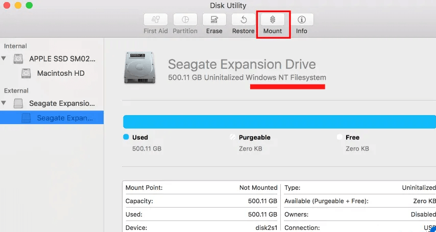 If your external hard drive is formatted with NTFS, that’s why the reason for Mac cannot move files to external hard drive. This is because NTFS, which is read-only in macOS by default, is the file system used for Windows. In such a case, you could follow the steps to check the file system of your external hard drive and reformat it: