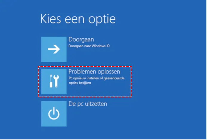 - Kies na het laden de taal voor het toetsenbord. Kies vervolgens Problemen oplossen > Geavanceerde opties > Herstellen met installatiekopie > Windows 10 vervolgens.