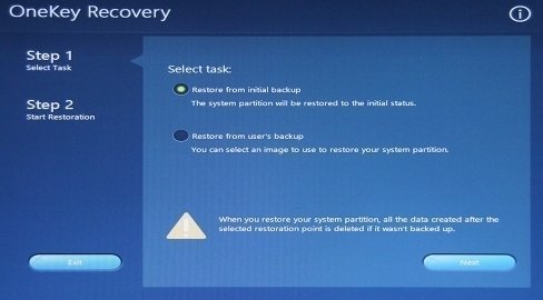 After getting access to Lenovo Ideapad OneKey Recovery, follow the steps below to reset it:
