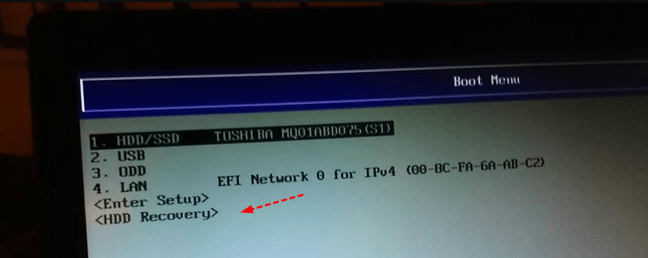 2. Choose HDD Recovery by the arrow keys and press Enter. Click Yes to continue with Toshiba Satellite recovery.
