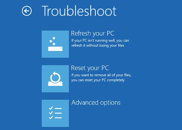2. Select Troubleshoot > Refresh your PC or Reset your PC. Or click Advanced options and select System Restore in it.