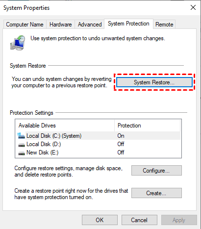 By default, the system restore point is enabled in Windows 7/8/8.1. But it is not enabled in Windows 10 or 11. If you don't enable system restore point manually, it will not create Toshiba restore point. So before using it for factory reset or system recovery, please be sure this feature is enabled. If not, it does not matter, and you can still use the Toshiba recovery disk or partition.