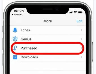 Open the iTunes Store app > Tap More on the bottom right > Choose Purchased in the next screen.