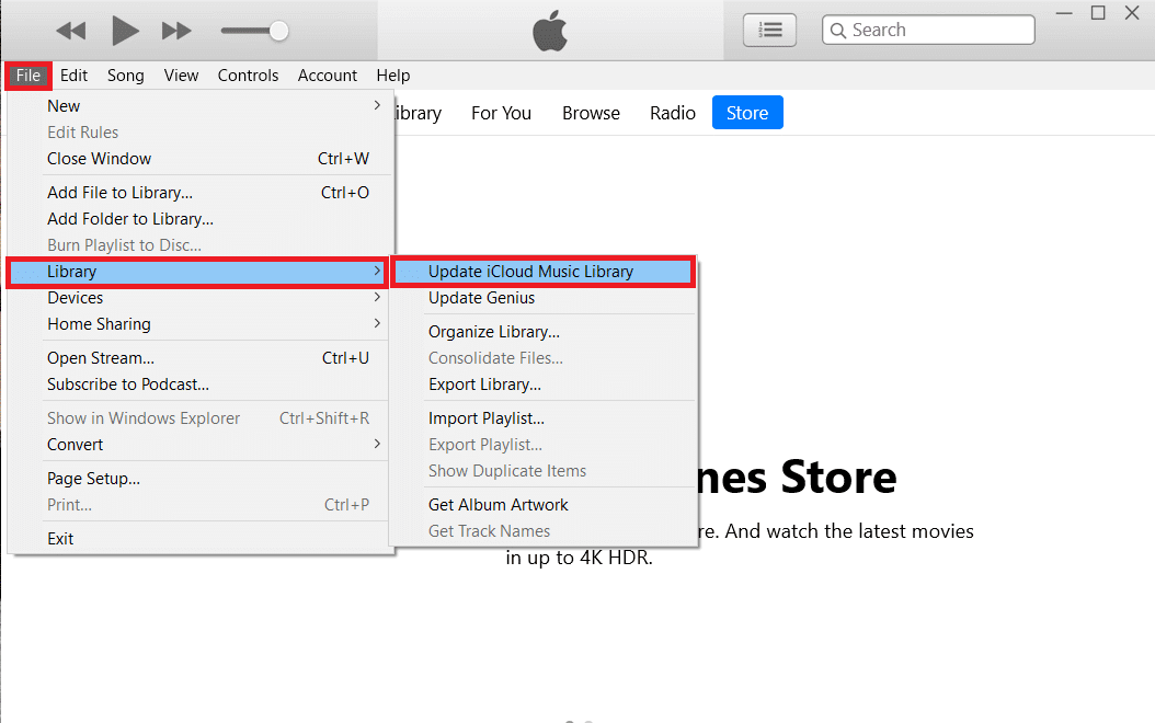 Alternatively, you can also update iCloud Music Library with iTunes to get Apple Music playlist back. Follow the steps to make it. Open iTunes on your PC or Mac > Go to File > Library > Click the Update iCloud Music Library to make it. Updating iCloud Music Library will refresh the whole library on your iPhone, it may help you restore the disappeared Apple Music playlist as well.