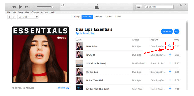 Step 3. After the track is successfully added to your library, click the Download icon to make Apple Music available offline.