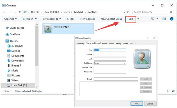 Step 2. Edit iPhone contacts on PC via Windows Contacts