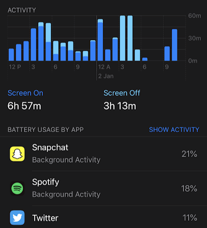 Besides, also check the Screen Off activity. If you find the time more than an hour, it’s likely to be an issue. You can tap Show Activity and it will tell you if you have an app consuming battery in the background. To turn off the background app refresh, you can go can to Settings > General > Disable Background App Refresh > Disable this for individual apps.