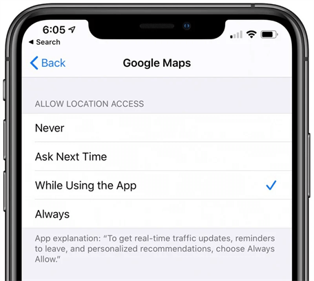 Go to Settings > Tap Privacy > Tap Location Services > Tap the app that you want to adjust > Four options for you to choose: Never, Ask Next Time, While Using the App, and Always > Choose one based on your needs.