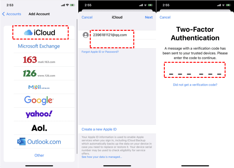 Step 3. Choose iCloud, enter the iCloud account and password you want to add.