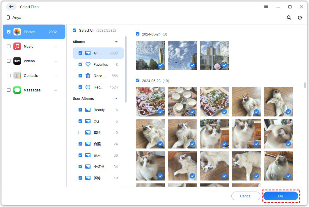 Step 3. Then, you can click the Photos icon and select which photos to transfer.