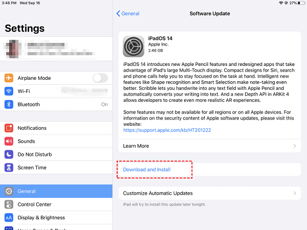 Step 2. Select Software Update on the right side. Then, click the Download and Install button to download the update.