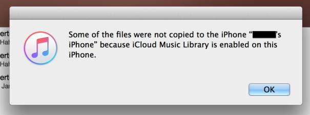 Syncing music - but iTunes says "iCloud Music Library is On"