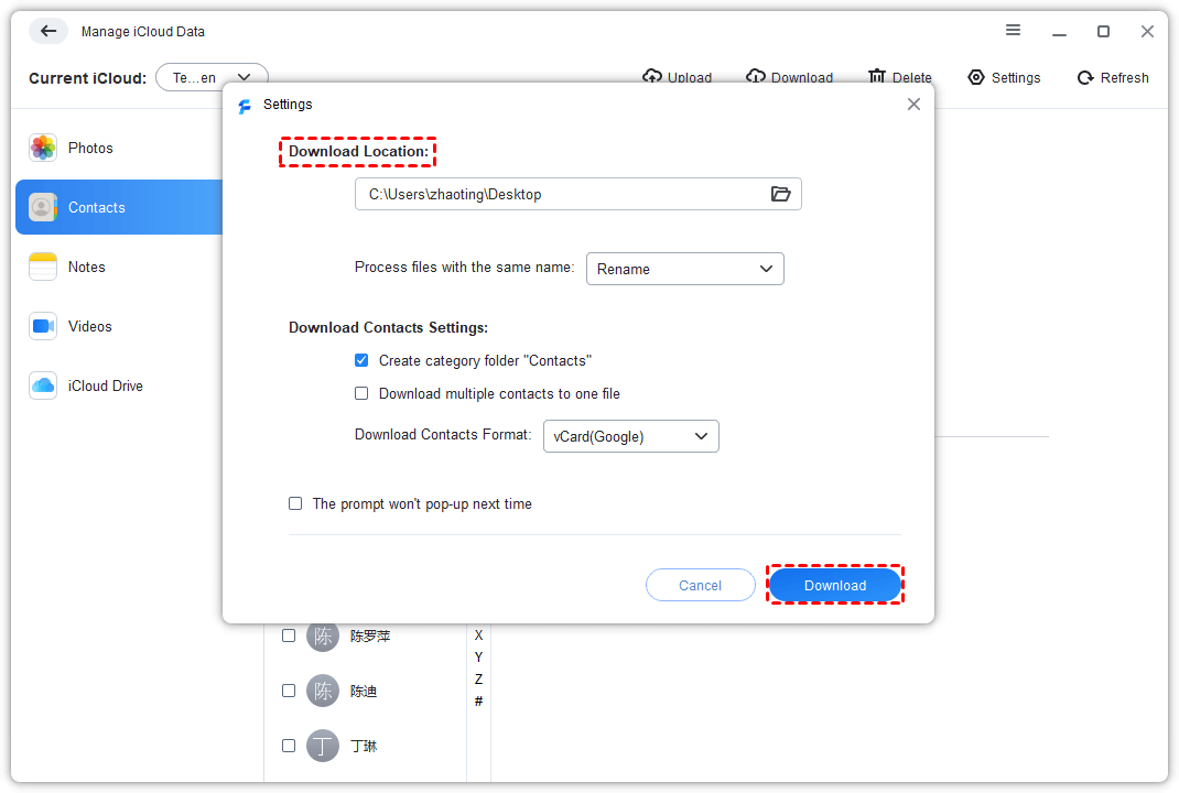 Step 3: Adjust the download settings as needed in the pop-up window> Initiate the download by clicking Download again.