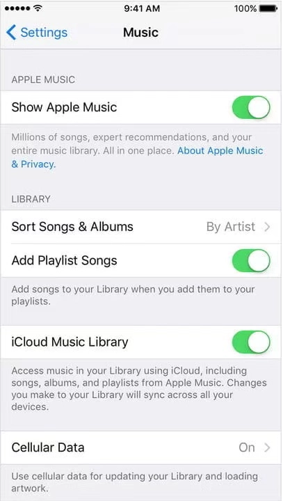 Step 1: If you don’t subscribe to Apple Music, please go to Settings > Your Name > iCloud > Music. Find iCloud Music Library and turn it on.