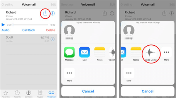1. Save voicemails to Voice Memos: go to Phone app on your old iPhone > tap Voicemail > choose the voicemail you want to transfer > tap the Share button > select Voice Memos.
