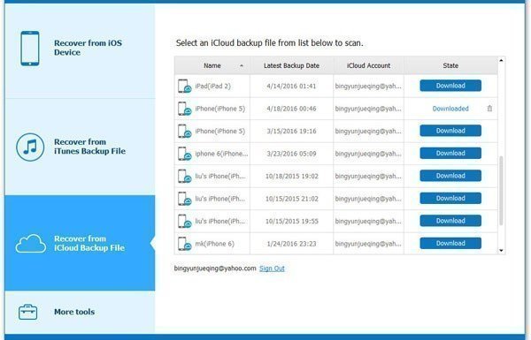 Step 2. Connect your Android phone to computer with USB cable. View all your iCloud backups, select the right iPhone and click Download.